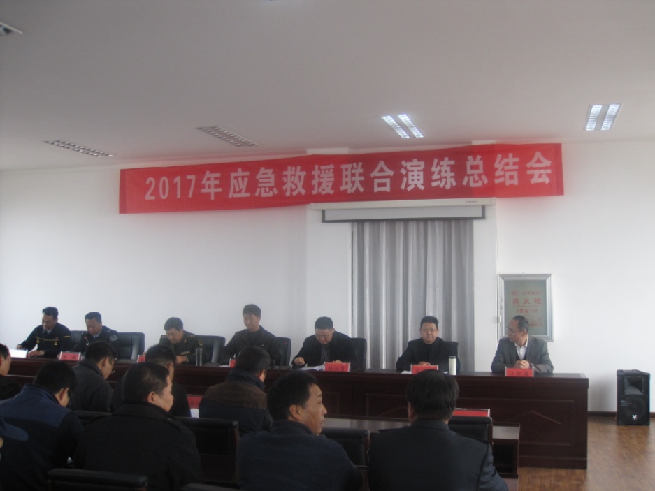 演練結(jié)束后,由應(yīng)急指揮部組織參演人員、觀摩人員在生產(chǎn)車(chē)間辦公樓三樓會(huì)議室召開(kāi)應(yīng)急演練總結(jié)會(huì)議,綜合評(píng)價(jià)應(yīng)急演練過(guò)程。武定縣人民政府副縣長(zhǎng)、縣公安局局長(zhǎng)楊漢霄同志對(duì)演練給予高度評(píng)價(jià),一是演練方案完整;二是應(yīng)急救援器材配備充足;三是自救到位,平時(shí)培訓(xùn)、訓(xùn)練有素;四是多部門(mén)協(xié)調(diào)配合,及時(shí)有序。楚雄州安監(jiān)局副局長(zhǎng)董云輝同志認(rèn)為武定分公司貫徹國(guó)家應(yīng)急預(yù)案要求,準(zhǔn)備充分、組織嚴(yán)密、職責(zé)明確、響應(yīng)及時(shí)、科學(xué)適用。武定縣安監(jiān)局局長(zhǎng)李輝同志評(píng)價(jià)本次演練既展示了企業(yè)的應(yīng)急水平,又檢驗(yàn)了企業(yè)及外部援助單位應(yīng)急處置能力,達(dá)到了預(yù)期演練目的。