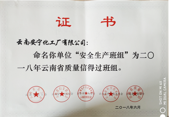 公司榮獲2018年云南省質(zhì)量信得過班組