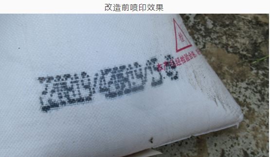 玉溪分公司粘性炸藥成品包裝袋的生產(chǎn)批號自投產(chǎn)以來一直使用大字符噴碼機(jī)進(jìn)行噴印,因大字符噴碼機(jī)使用的墨水是水性墨水,噴印后的墨水會(huì)沿著包裝袋條紋擴(kuò)散,最終導(dǎo)致噴印批號、生產(chǎn)日期數(shù)字模糊。