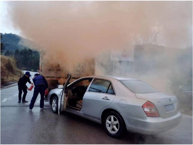 本次演練是模擬公司危貨運(yùn)輸車裝載成品后由安寧分公司后門駛出,一輛小轎車因右轉(zhuǎn)時(shí)車速過快,小轎車車頭追尾危貨運(yùn)輸車后貨廂尾部,導(dǎo)致小轎車車頭起火。駕駛員及押運(yùn)員在第一時(shí)間迅速向公司報(bào)告并報(bào)警,立即處置初起火災(zāi)。公司接到事故報(bào)告后立即對(duì)事故進(jìn)行分析研判后果斷決定組織應(yīng)急隊(duì)伍到現(xiàn)場開展應(yīng)急救援處置。經(jīng)過現(xiàn)場人員全力有序配合,迅速把初起火災(zāi)撲滅,未造成人員傷亡和過大的財(cái)產(chǎn)損失。演練過程按照應(yīng)急演練方案進(jìn)行,組織有力、分工明確、處置得當(dāng),達(dá)到預(yù)期效果。